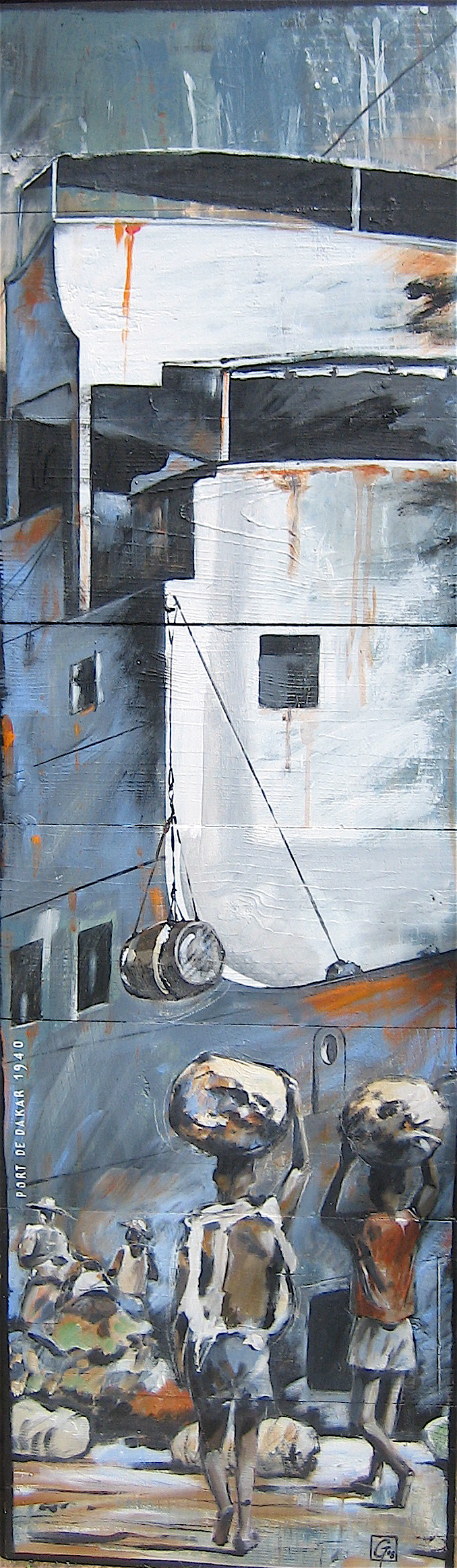 « Débarquement Dakar/1 » SÉNÉGAL 2008 – Acrylique sur bois 170 x 50 cm.