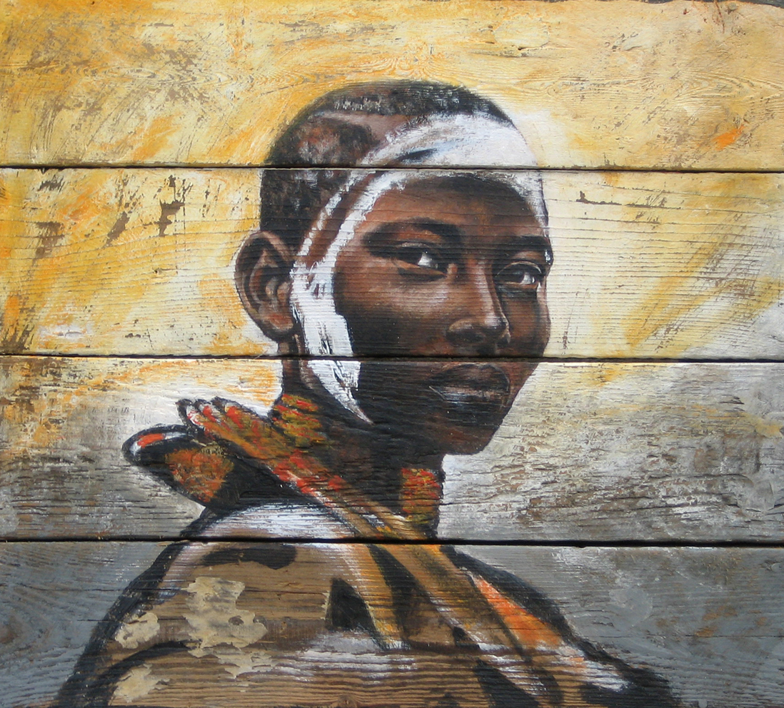 « Jeune fille Masaï » KENYA 2006 -Acrylique sur bois 42 x 46 cm