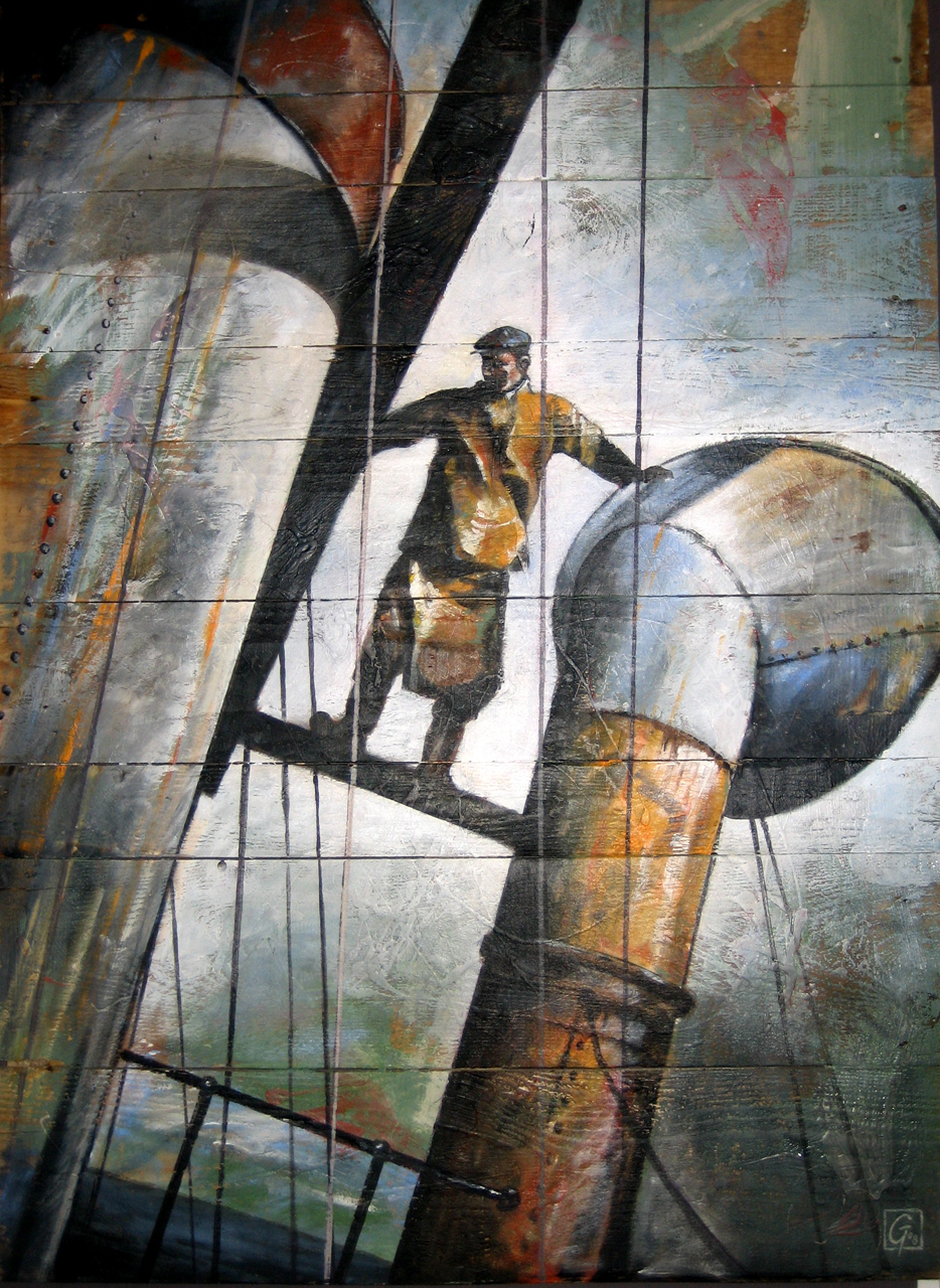 « Nettoyage de cheminées » SÉNÉGAL 2008 -Acrylique sur bois 120 x 80 cm.