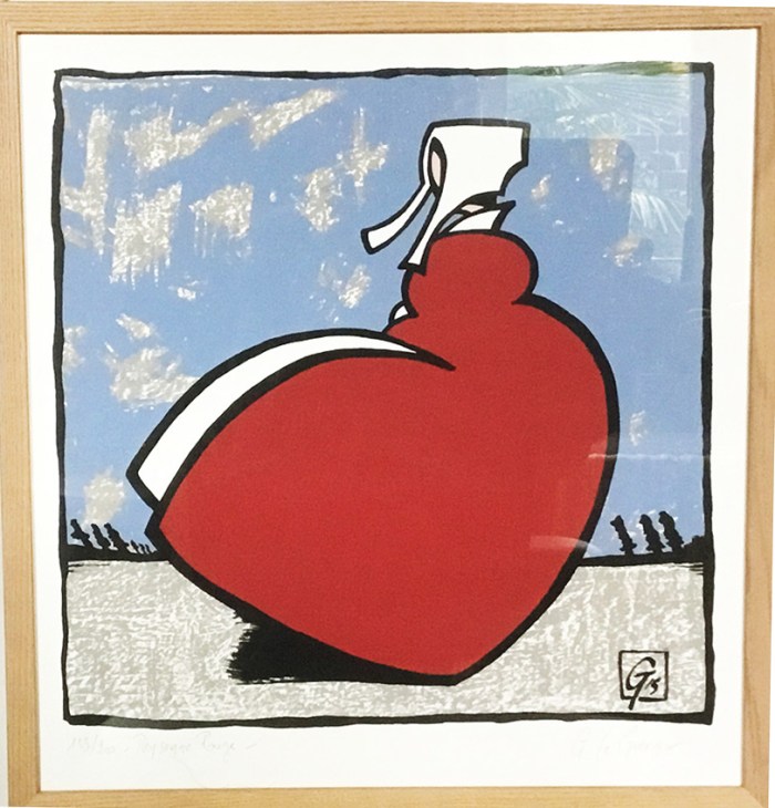 « Paysanne rouge » 2016 – Sérigraphie 5 couleurs, numérotée, signée, cadre chêne 39 x 41 cm, tirage 200 exemplaires.Épuisé.