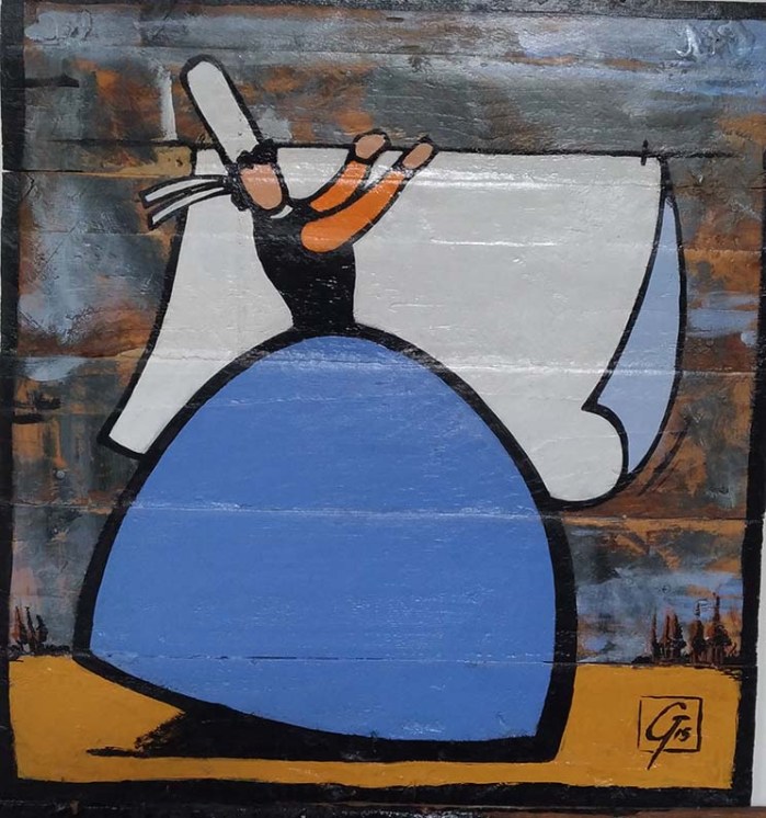 « Bigoudene au linge » 2010 Acrylique sur bois 40 x 40 cm.
